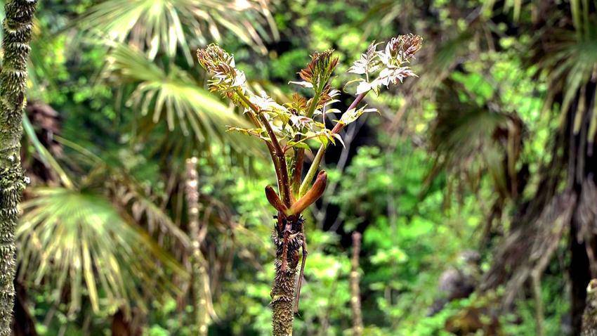作为树头菜中的珍品,刺龙苞被当地人誉为“野菜之王”。经验丰富的村民在采摘时,还会根据其鲜嫩程度,细分为“刺嫩芽”和“刺老芽”。据了解,刺龙苞不仅富含多种微量元素和矿物质,其碳水化合物与生物碱的含量也颇为可观,堪称大山馈赠的营养宝库。