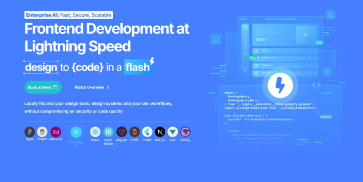 LocofyAI是一款面向企业级应用、功能极为强大的设计转代码工具。它以其广泛的框架支持和对开发工作流的深度集成而著称。除了Figma,LocofyAI还支持Penpot和Adobe XD,在输出端,它几乎涵盖了所有主流前端框架,包括 React、React Native、Vue、Angular、Next.js、Gatsby、Flutter 和 HTML/CSS。