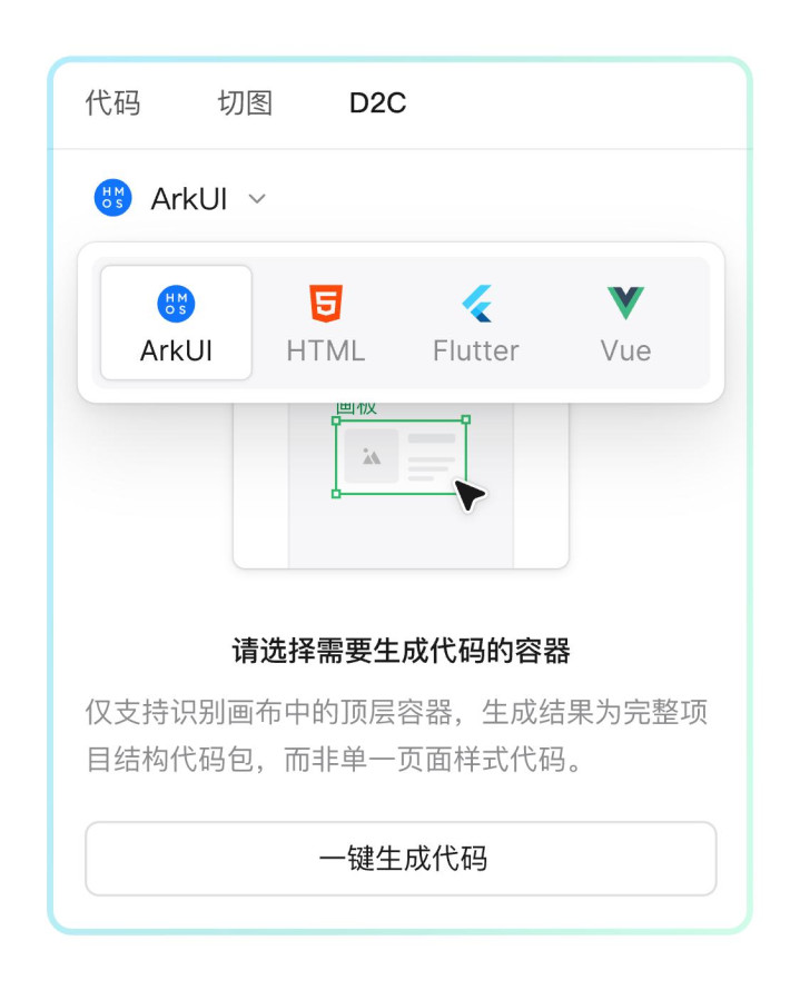 基于Pixso D2C把设计稿转为代码时,不仅可以生成常规的 HTML/CSS 代码,还针对移动端、跨平台开发和单页面应用(SPA)场景,提供了对 Flutter 和 Vue 前端框架的支持,能够输出符合规范的结构化代码。