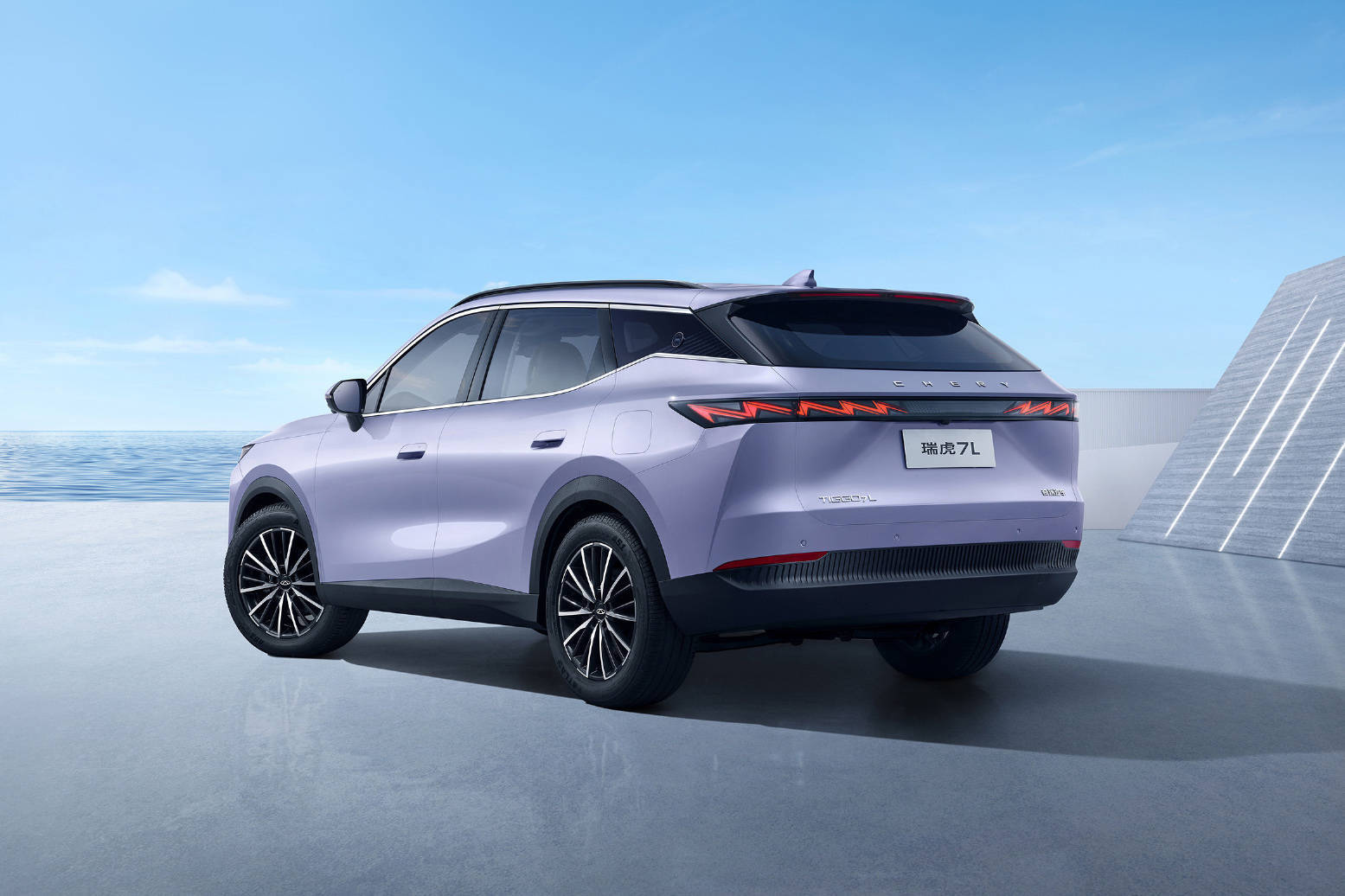 在灯组设计上瑞虎7L也是相当讲究,配备的这套波光流影前大灯组能营造出层次分明的效果,与波浪造型的贯穿尾灯形成呼应,拓宽视觉宽度的同时,也具有足够的辨识度。至于在细节部分,新车还配备有悬浮式车顶以及19寸风暴轮毂等个性化设计,最关键的是在这台纯燃油车上居然还看到半隐藏式门把手,确保实用安全的同时,科技感直接拉满。